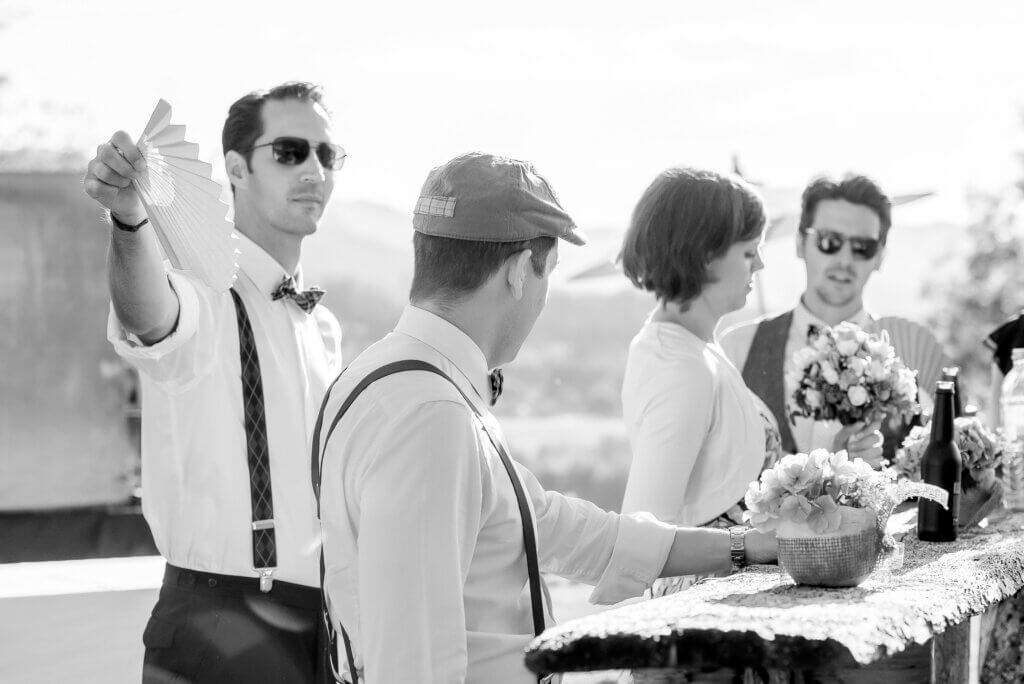 Bei Aline und Emanuel konnte man wirklich nicht sagen, dass sie sich von irgendetwas stressen ließen. Mit größter Geduld und Ruhe bereiteten sie sich auf alles vor – selbst am Tag ihrer Hochzeit. Der Stil der Feier spiegelte eine entspannte Vintage-Atmosphäre wider, an die sich auch die Gäste in ihrer Kleidung anpassten.