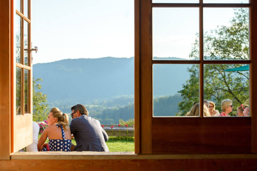 Die Hochzeit fand in Lilli’s Feststadl statt, mit einer fantastischen Aussicht auf die beeindruckende Bergkette der Karawanken.