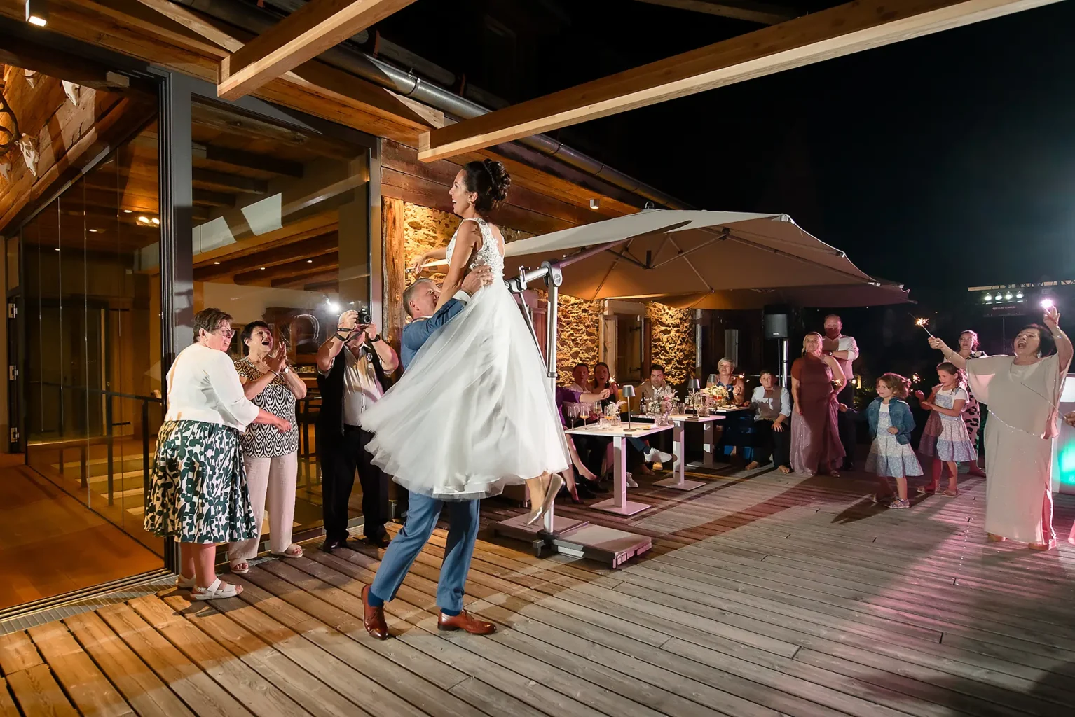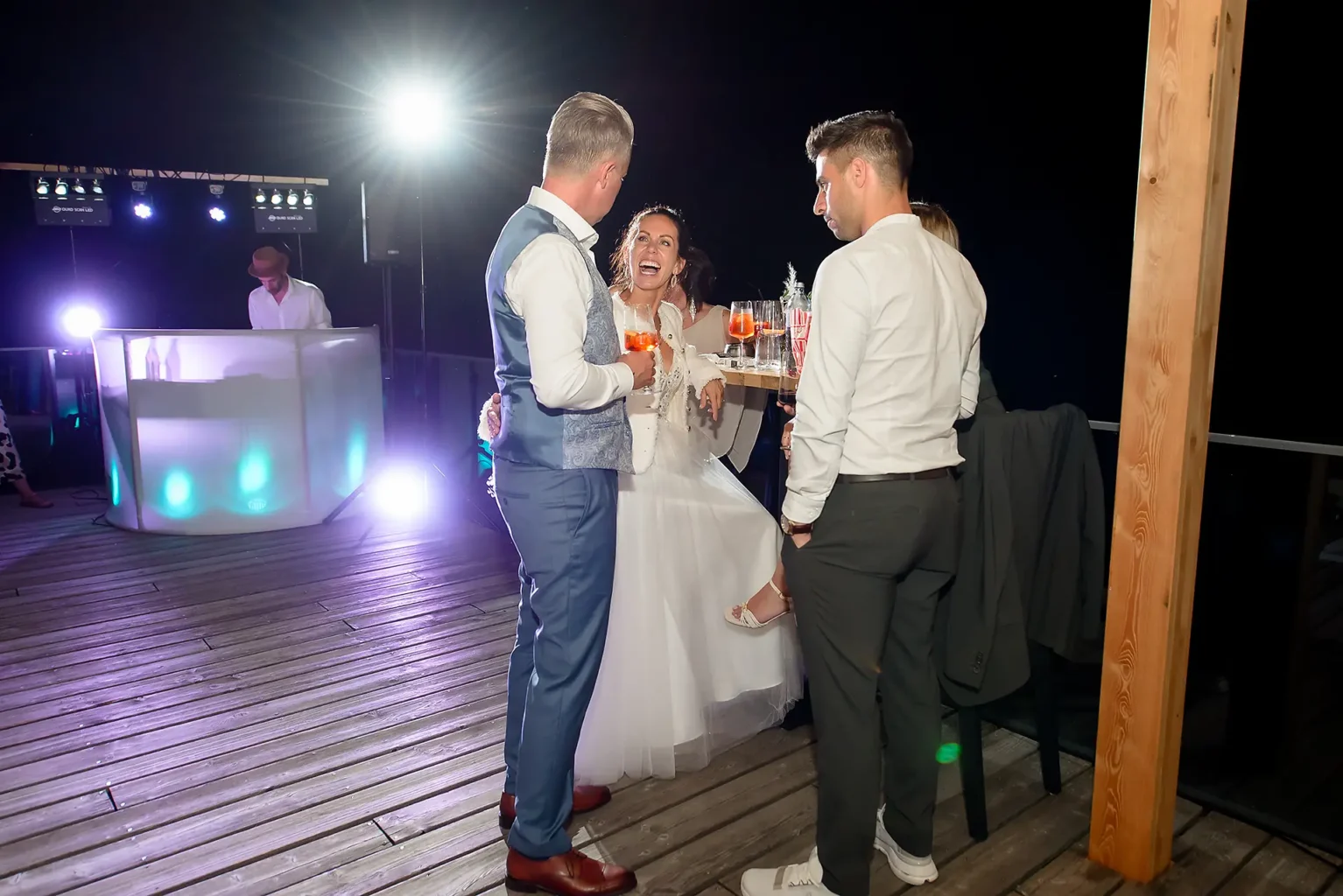 die wir dem Paar und den Gästen nach dem Anschneiden der Torte zeigten.