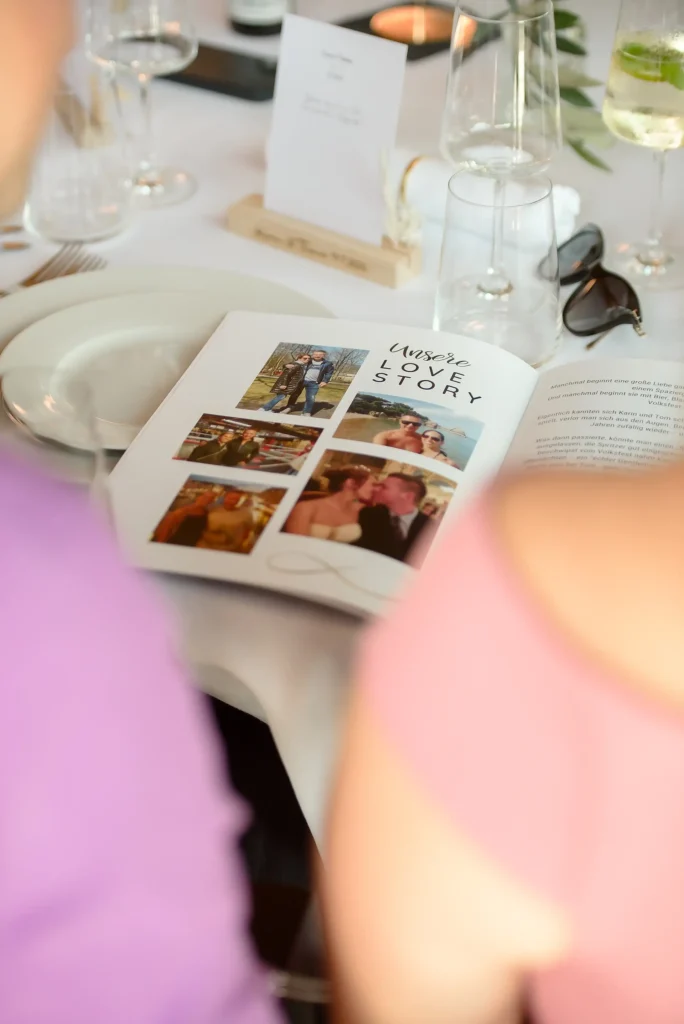 Diese Präsentation, zusammengestellt aus den am selben Tag aufgenommenen Hochzeitsfotos, ist jedes Mal ein ganz besonderes Erlebnis – die frischen Erinnerungen erwachen sofort auf der Leinwand zum Leben.