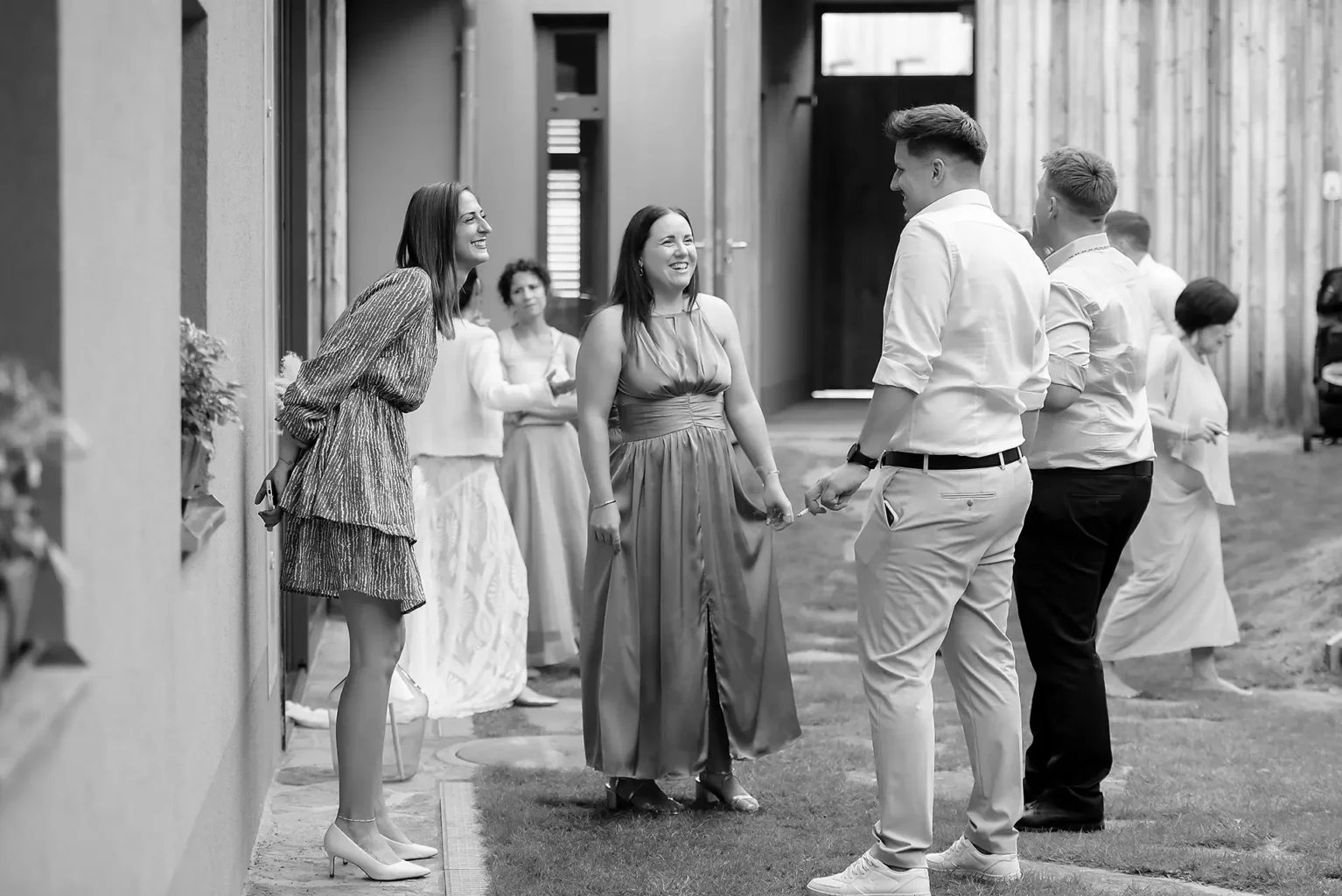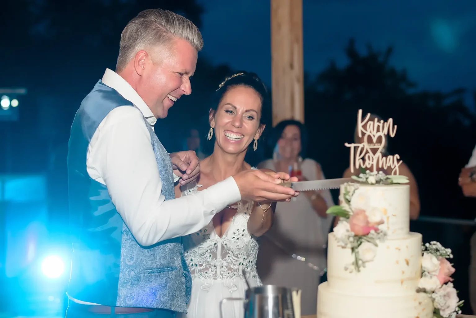 Die Hochzeit von Karin & Tom war keine riesige, bis in die frühen Morgenstunden dauernde Party, sondern vielmehr eine angenehme, freundschaftliche Feier: leise Hintergrundmusik, Gespräche, ein paar Tanzschritte – alles in einer fröhlichen, unbeschwerten Atmosphäre, die perfekt zu den beiden passte.