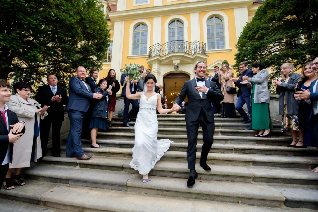 A tervezett kaliforniai ünnepség – a többször átszervezett dátumok ellenére is – sajnos a lezárások miatt csak egy nagyon szűk körben valósult meg amerikai vendégekkel. Azonban így is nagy élmény volt Németországban, a Rammenau-i Kastélyban megrendezett esküvőjükön végigkísérni őket.