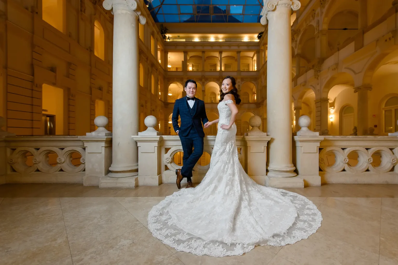 Poh Gee & Lim Malájziából indultak egy európai körútra, melyen egyik állomásaként Budapestet választották, ahol az esküvőjük előtti kreatív fotózásra kértek fel minket. November elején érkeztek és bár a pontos részleteket már júliusban leegyeztettük, a Magyarországon tartózkodásuk szűkebb időtartama miatt, a fotózásra nem volt lehetőségünk kitűzni esőnapot. Ezzel igyekszünk mindig tervezni, pont az időjárás kiszámíthatatlansága miatt. Mondanom sem kell, hogy a napfelkeltére megbeszélt fotózás napján, szakadó esőben indultunk el a New York Palace szállodába, ahol a megbeszéltek szerint találkoztunk.